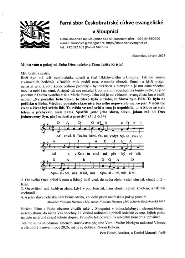 - Další informace naleznete na sborových internetových stránkách https://sloupnice.evangnet.cz